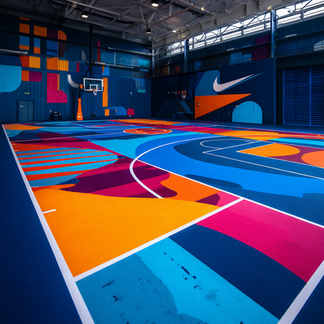 Projeto conceito de ambientação para um clube esportivo com lojas, quadras, itens de esporte entre outras intervenções visuais de branding e arte.